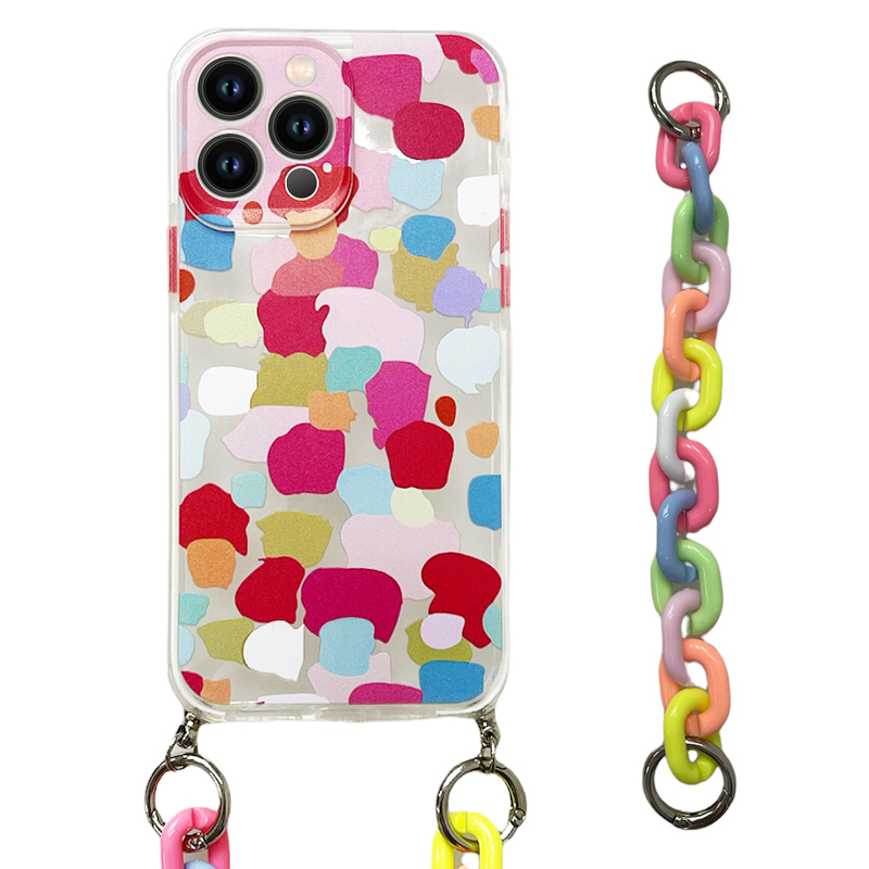 Η θήκη με αλυσίδα αποτελείται από διάφανη TPU θήκη και από μια κοκάλινη αλυσίδα ενσωματωμένη στην θήκη για να κρεμάτε με ευκολία το κινητό στο χέρι σας.