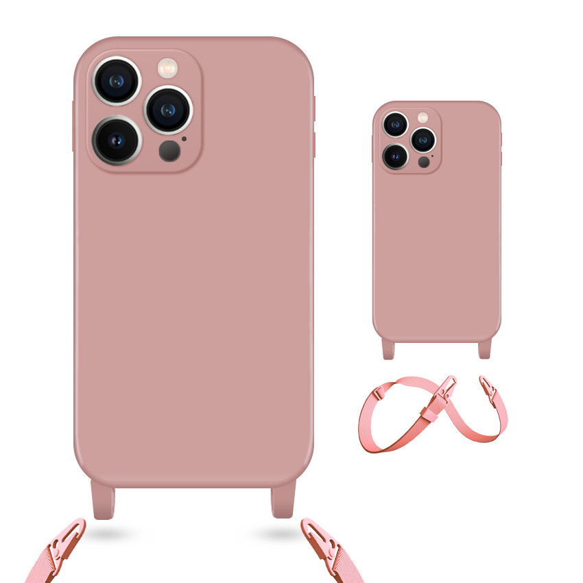 Θήκη Premium με Υφασμάτινο Λουράκι Λαιμού για Apple iPhone 12 Pro Σομόν