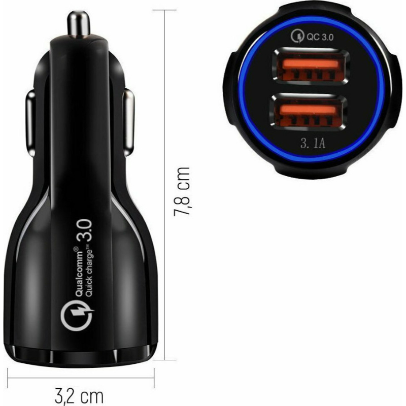 Ταχυφορτιστής αυτοκινήτου WOZINSKY WCC-02 με 2 θέσεις USB 3.0 3.1A Μαύρο